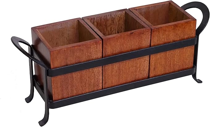 - RUSTIC CHARM: Beautifully house in a black metal frame, these hand polished Mango Wood crocks will be a fantastic addition to your dining table or countertop.