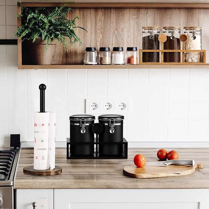 - KEEP THE DESKTOP TIDY: The coffee Containers set includes a wooden storage shelf and a Silver iron coffee spoon, which not only facilitates users to organize and categorize similar foods, make the desktop more tidy, and use the cans more conveniently, but also can decorate your desktop and let Your desktop is no longer monotonous.