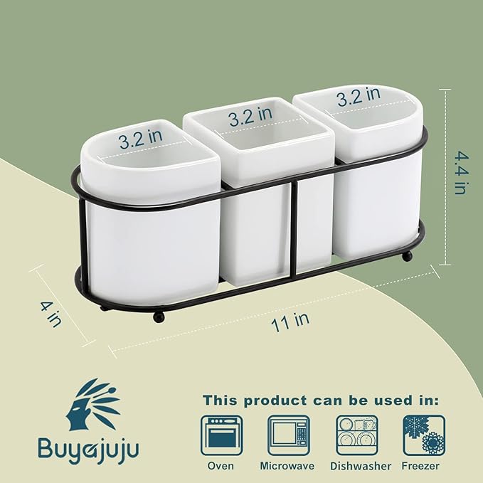 - 3-piece white ceramic tableware box, including spoon holder, fork holder, knife holder and ferrous metal holder,Our Kitchen Utensil Holder will put your tableware in one place to avoid looking messy