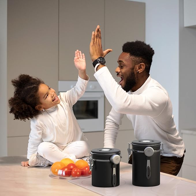 - 【Strong sealing】:This coffee storage airtight canister uses a one-way CO2 valve, which can release carbon dioxide inside the coffee storage container, thus effectively isolating, oxygen, water vapor into the coffee canister, preventing the food inside the coffee jar from getting wet and maintaining the best condition.