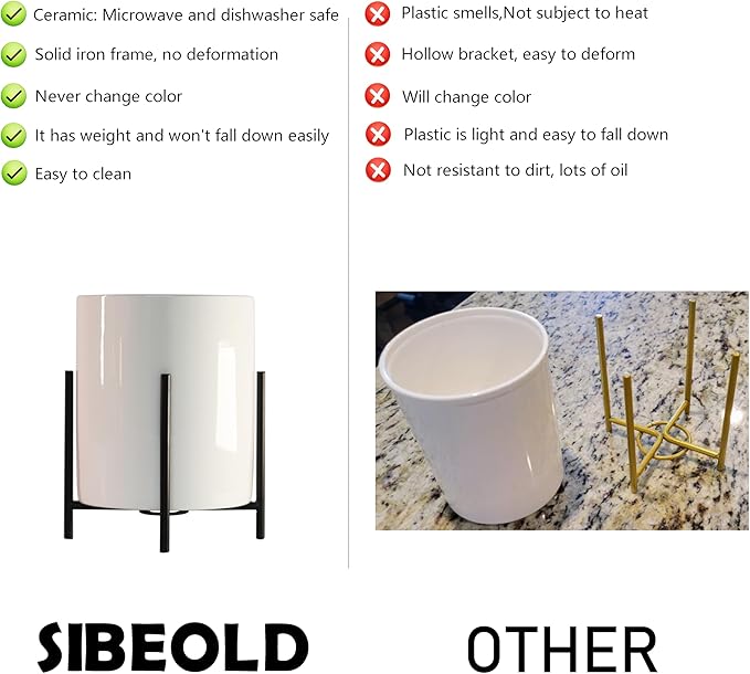 - 【DURABLE】kitchen utensils holder is made of high-quality ceramic and Metal material, making it durable enough to last for many years.