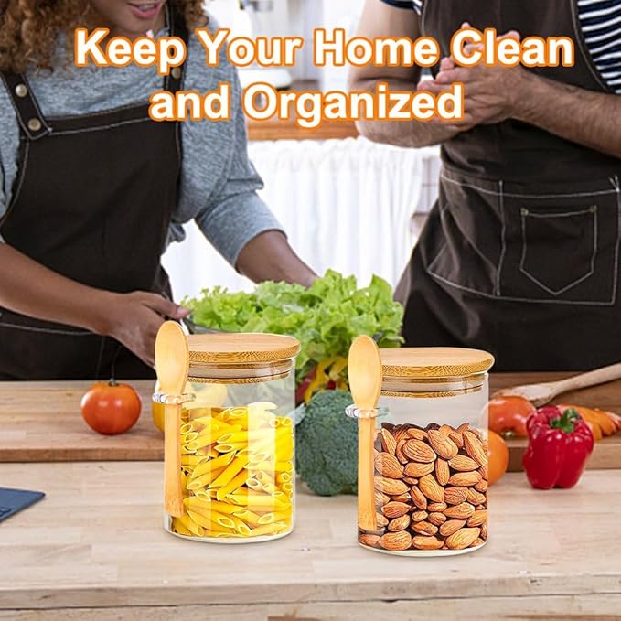 - Convenient Storage&Decoration:Our Glass Jars are natural and recyclable, leak proof, preservative and high temperature resistance. The transparent glass allows you to see what is inside and easily check whether your food has run out or still available. Perfect for cabinets,easy to store and save space. What's more, the stylish design and package will be a good decor for your room or a nice gift for friends.