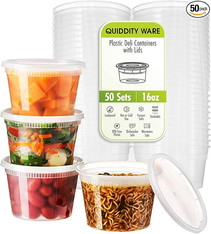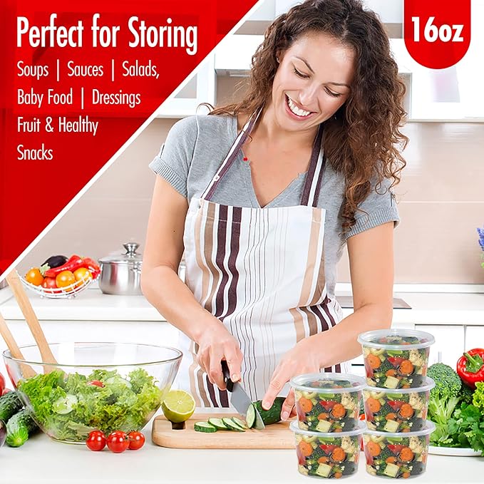 16oz-Deli Containers with Lids Leakproof - 50 Pack BPA-Free Plastic Microwaveable Clear Food Storage Container Premium Heavy-Duty Quality, Freezer & Dishwasher Safe