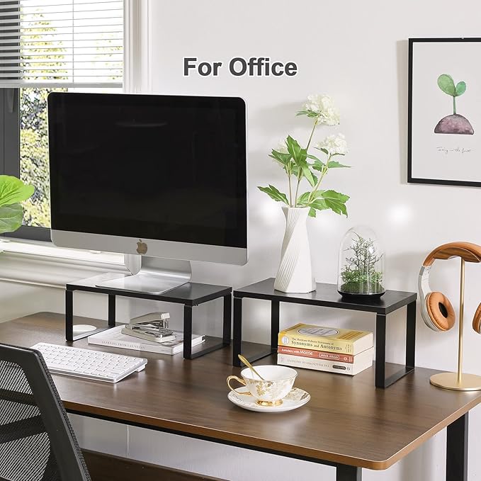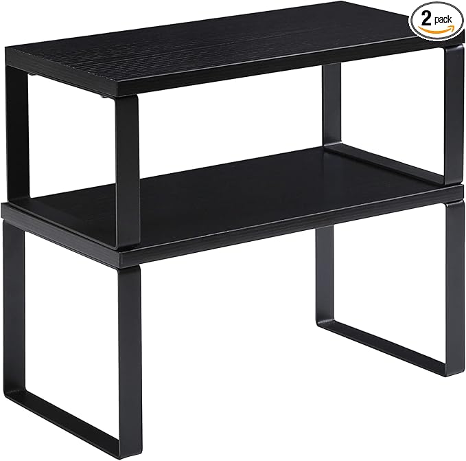 YMYNY Cabinet Shelf Organizer, Countertop Shelves Set of 2, Kitchen Spice Racks, Stackable, Storage Racks for Cupboard, Sink, Pantry, Bathroom, Black, Metal, UHSR002B