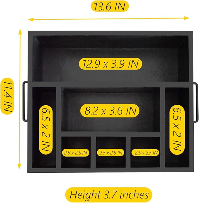 - SIZE --- Farmhouse plastic silverware holder outside measurements are approximately 13.56" long x 11.42" wide x 3.54" tall.The inside measurements of the rear compartment are 12.85" long x 3.86" wide (Please make sure your plates will fit! ).