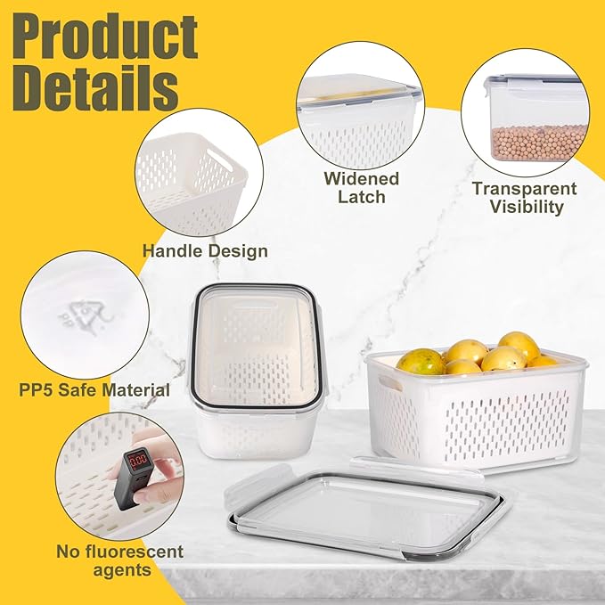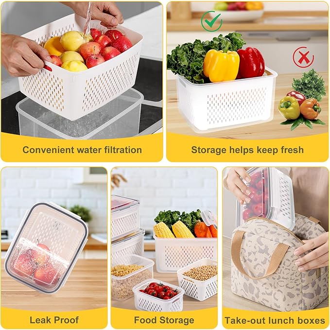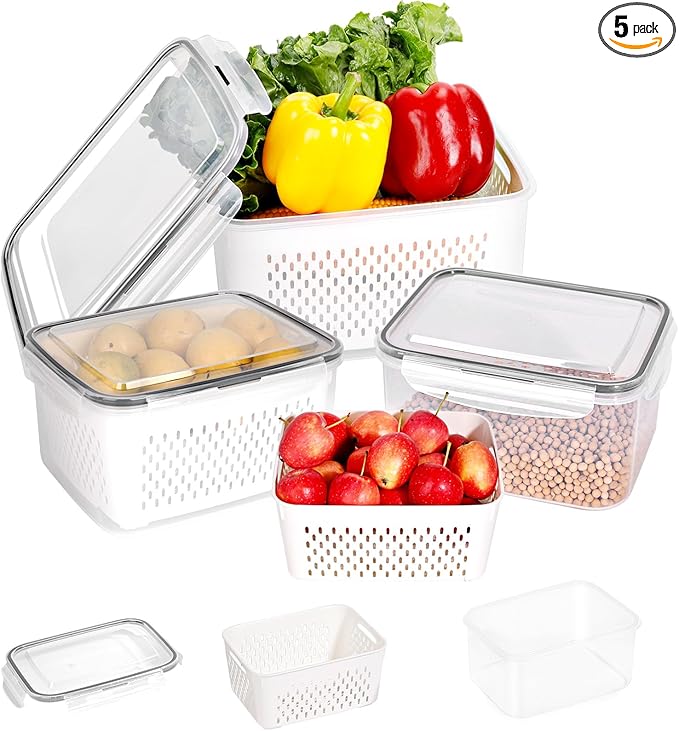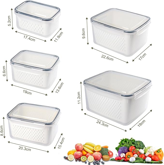 - Convenient Food Storage Containers:This 15-piece set Food Storage Containers comes with 5 Airtight Lids,5 Removable Colander,5 Food Storage for airtight food storage.