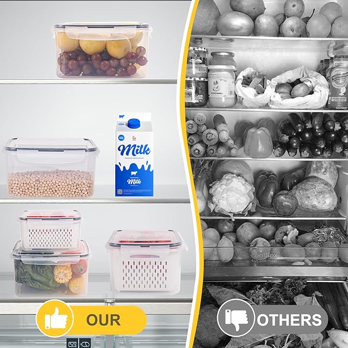 - Airtight & Leakproof: produce storage containers lids are airtight with silicone mat that open and close easily for safe storage that keeps your food fresh