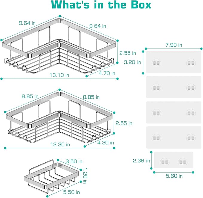 - Rust-Proof and Thicker Solid Frame: The corner shower caddy frame is made of stainless steel, coated with rustproof paint, and thickened wire than those shower caddies on the market. This adhesive shower caddy remains rust-free and maintains a high sheen for years