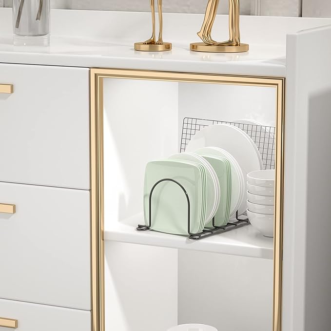 - √ 【Keep your cabinets well-organized 】The plate rack can store your pots lid,cutting board, cookie sheets , pans , bakeware , file folders,reusable bags and bee wraps orderly