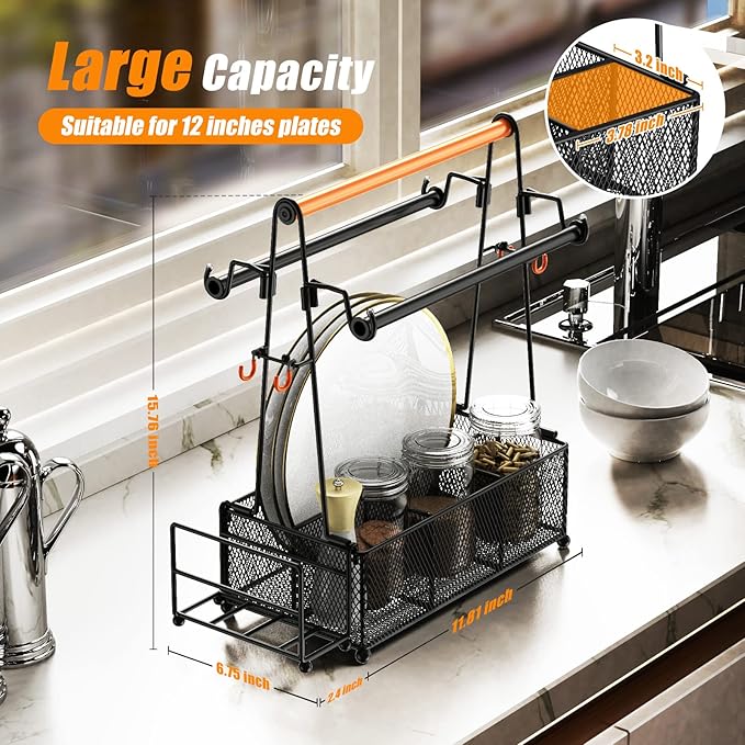 - [LARGE CAPACITY]The MULTI-PURPOSE silverware caddy has 1 large and 3 small compartments that can hold plates up to 12 inches and is easy to put condiments, table knives, forks, spoons, napkins, paper towel rolls, cups, and more.Size:14.57"W*6.7"D*16.14" H, Installation instructions are included in the package, easy to assemble.