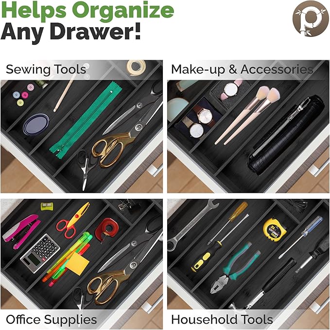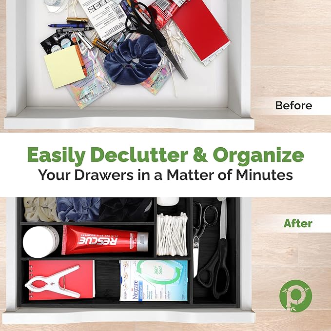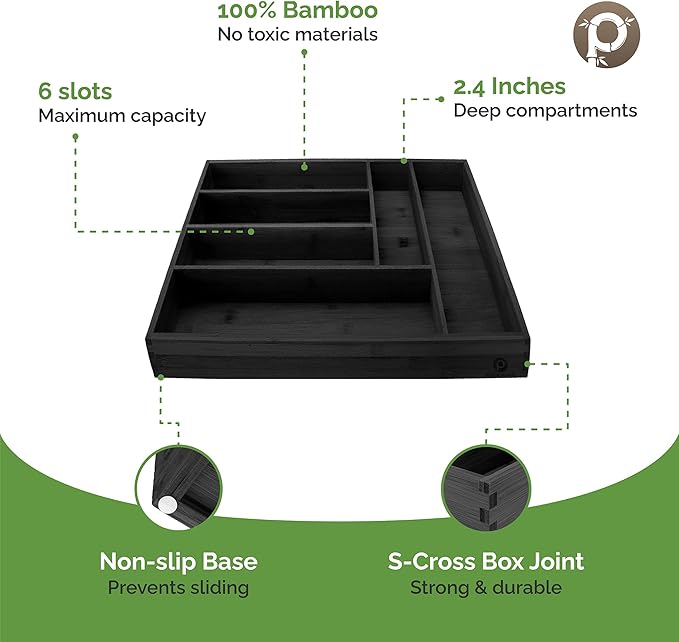 - SUPERIOR DESIGN SOLUTIONS: The only bamboo drawer organizer that offers all-in-one features: 100% bamboo (even the base), No Toxic MDF, Slip-resistant, Extra Depth, Strong & Durable Construction. This is undoubtedly the best drawer organizer available and our reviews are the testament of the quality.
