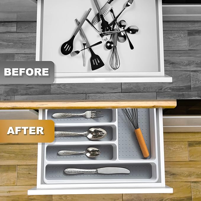 - ✅【Keep all you need at hand】Find what you need when you need it with our silverware organizer compatibility. Pull out the drawer, find the utensil in its own compartment. No more scrambling because you can't find your cutlery while cooking.