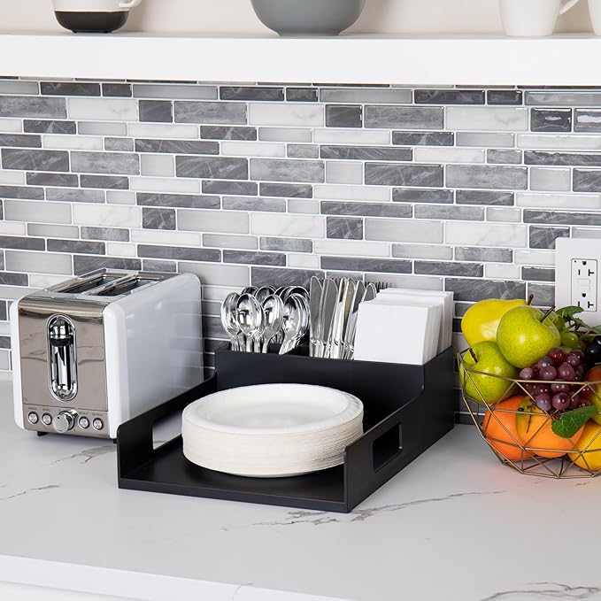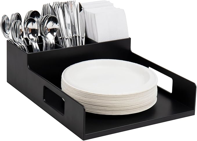 - A convenient storage solution: Use this organizer for cutlery, napkins and plates in your office breakroom, home kitchen, or when entertaining guests