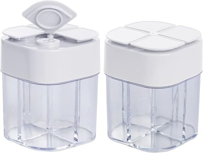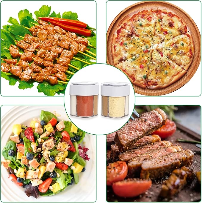 2 Pack 4 in 1 Spice Container Salt and Pepper Shaker Transparent Seasoning Shaker Can Filter Lumps Spice Jars for Home Restaurant Camping Travel Cooking BBQ (White)