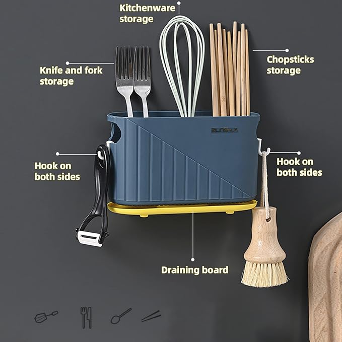 Kitchen Cutlery Drainer Utensil Holder Cutlery Storage Box Wall-Mounted Tableware Storage Holder Utensil Caddy Flatware Organizer Countertop (White)