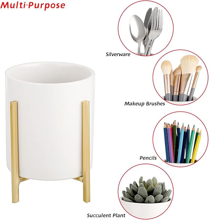 - Ceramic utensil storage holder with metal frame support, waterproof and dirt-resistant at the bottom, its elegant look adds a professional chef look and feel to your cooking and countertop.