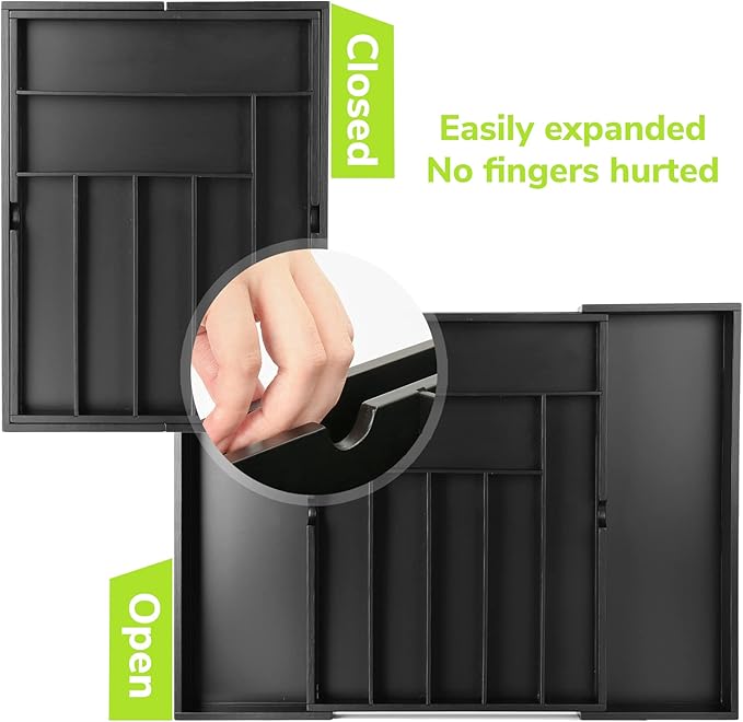 - PERFECT FOR STORAGE: The drawer organizer has rectangular compartments in a variety of sizes that will be fully stored in a variety of ways to maximize your space; The various compartments provide optimal space for holding teaspoons, soup spoons, forks, knives, and various serving pieces, as well as cooking utensils and tools like tongs, can openers, and food thermometers