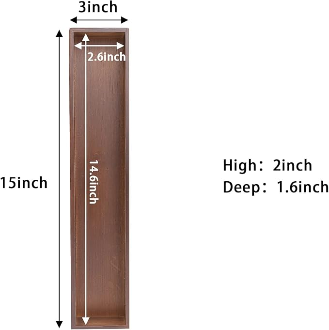 Bamboo Drawer Organizer,Kitchen Utensil Organizer Silverware Tray,Cutlery Holder, Wood Storage Box for Flatware, Makeup, Bathroom, Office Desk,15 * 3 * 2,Nut-brown