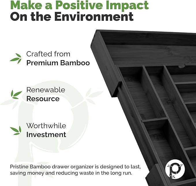 - SUPERIOR DESIGN SOLUTIONS: The only bamboo drawer organizer that offers all-in-one features: 100% bamboo (even the base), No Toxic MDF, Slip-resistant, Extra Depth, Strong & Durable Construction. This is undoubtedly the best drawer organizer available and our reviews are the testament of the quality.
