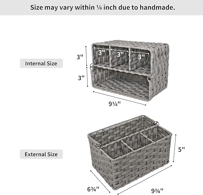 - Measures 9.75in x 6.5in x 5in; handwoven design may vary up to 0.25in