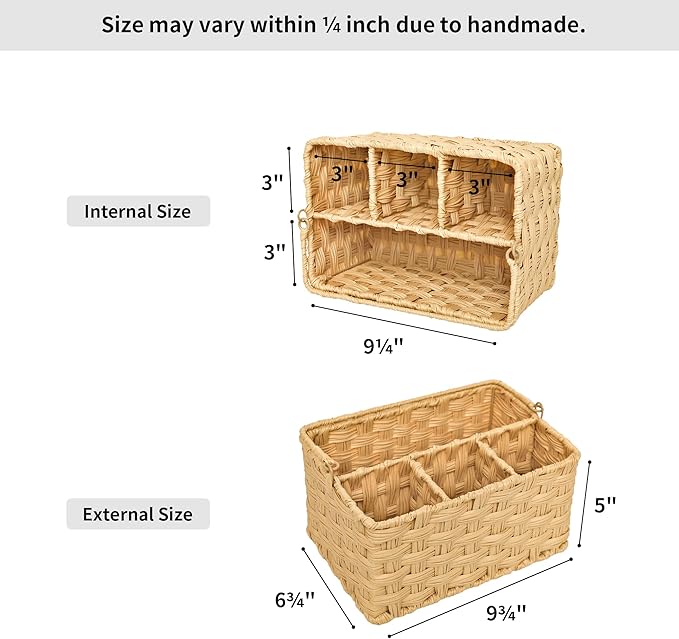 - Measures 9.75in x 6.5in x 5in; handwoven design may vary up to 0.25in