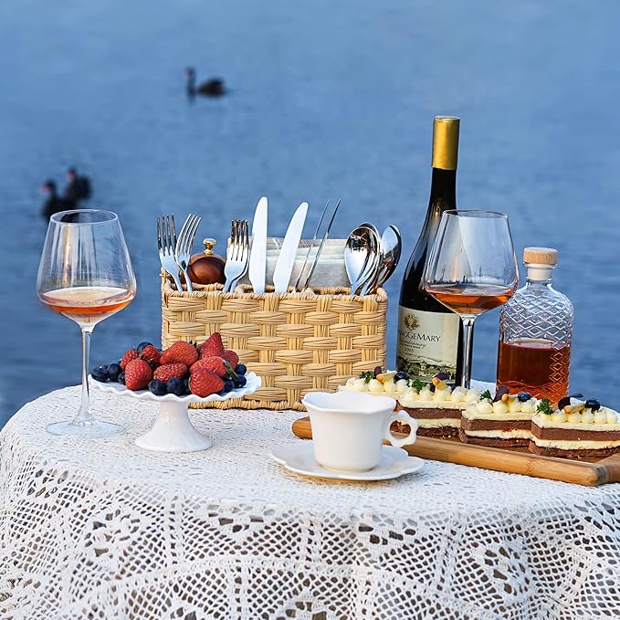 GRANNY SAYS Wicker Utensil Caddy, Utensils Holder Buffet Caddy, Spoon Cutlery Holder Utensils Organizer, Condiment Organizer Silverware Holder, Utensil Organizer for Countertop