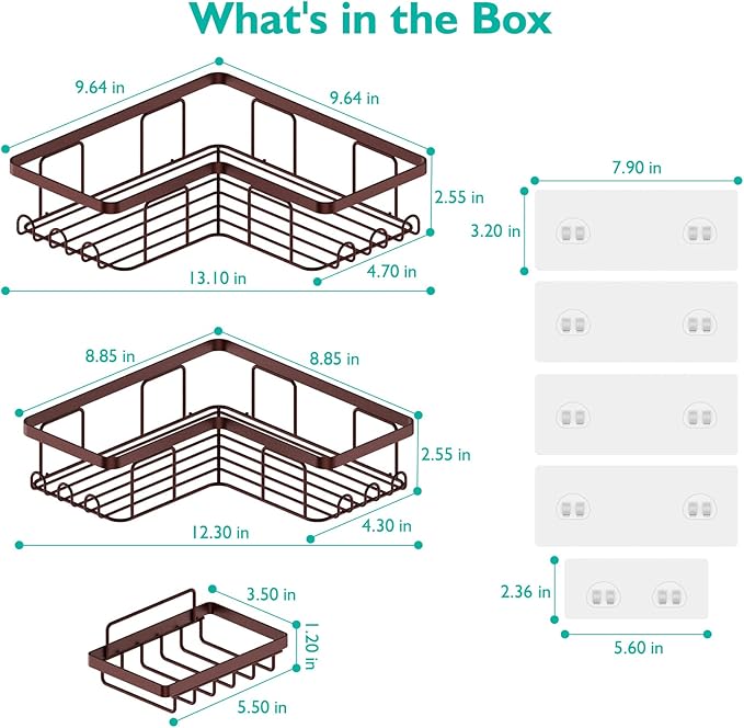- Easy to Install and Remove: This brown corner shower caddy is easy to install with the adhesive instead of the suction cup. Note: Heat the adhesives with a hairdryer to remove the adhesive shower caddy, no damage to walls