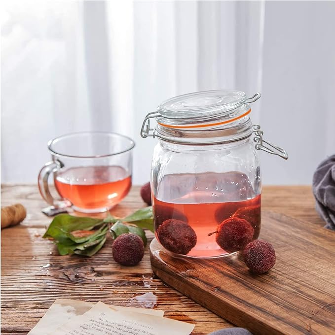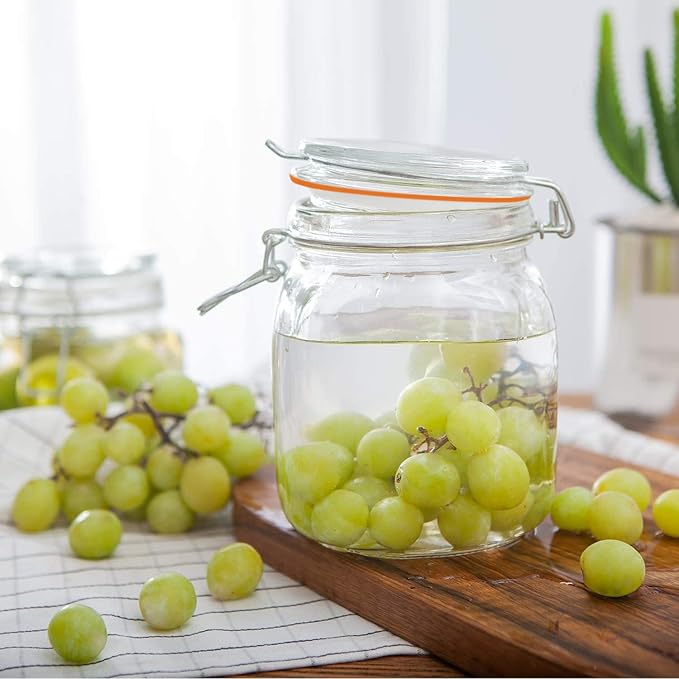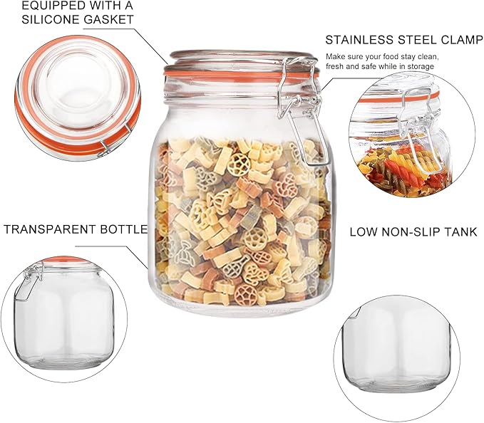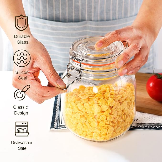 - Excellent Organization Set:These multipurpose,prefect size to be used as canisters,storage jars for home and kitchen,ideal for pasta,cereal,coffee,beans,sugar,candy,cookies,snacks,rice,noodles, flour,spices,seeds,shells,bath salts,powder and so much more,also great for canning your own pickles and other canning foods!Each jar equipped with a hinged lid that provide airtight seal to keep your storage to remain fresher for longer,elegant design make its being a excellent gift for sure too!