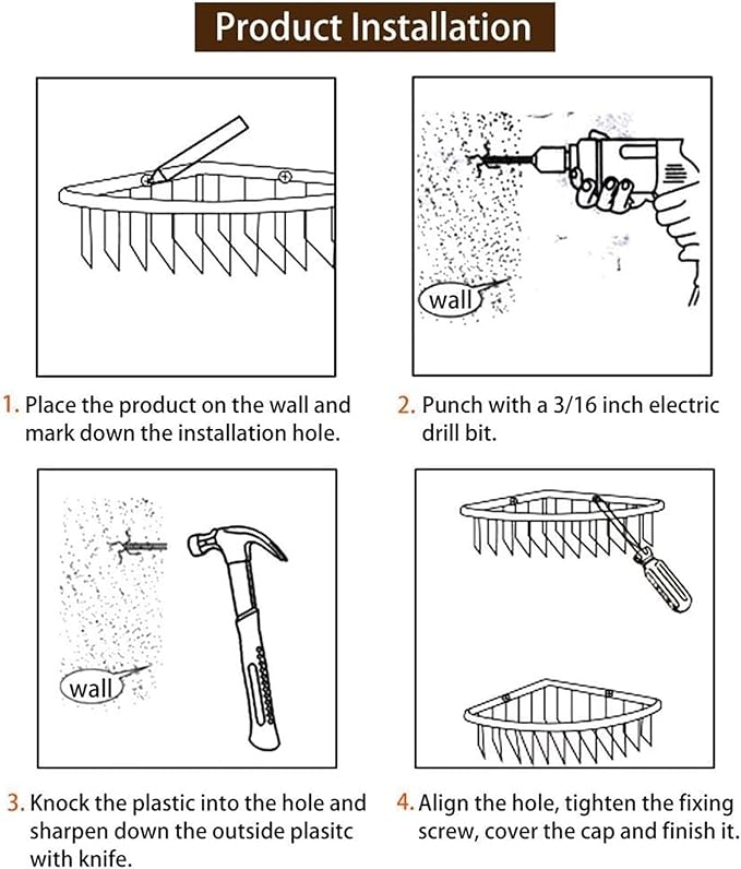 - Wall Mounted Design: Much more sturdy than adhesive style, which can withstand up to 25kg weight. No more worry about pressing shampoo directly on the shelf.