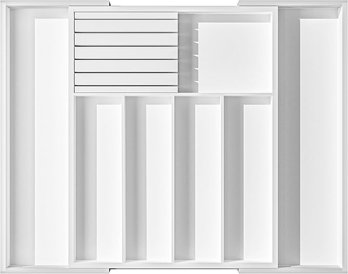 - 【Expandable on Both Sides】: The closed size of the drawer organizer is 12.8*16*2 inch, and the width can be expanded to 20.2 inches. Suitable for drawers above 13*17*2 inch. Please confirm the drawers size before purchasing, our large utensil drawer organizer can expand according to the kitchen cabinet and fill the drawer.