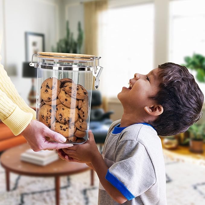 - ANTI-FALLING: This jar is made of high-quality thickened plastic material, which is strong and anti-falling, and more practical. It is very suitable for holding cookies, candy and other snacks that children like. Families with children no longer need to worry about the location of the cans!