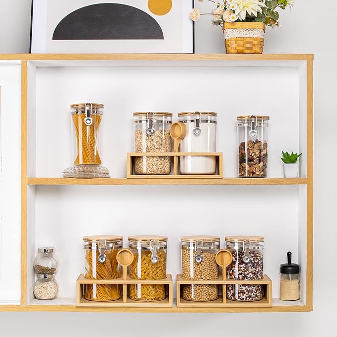 Yangbaga 2Pcs Coffee Sugar Canisters with Shelf, 58OZ Plastics Storage Containers for Ground Coffee Bean Storage with Lid Locking Clamp&Coffee Scoop, Food Storage Jar for Kitchen