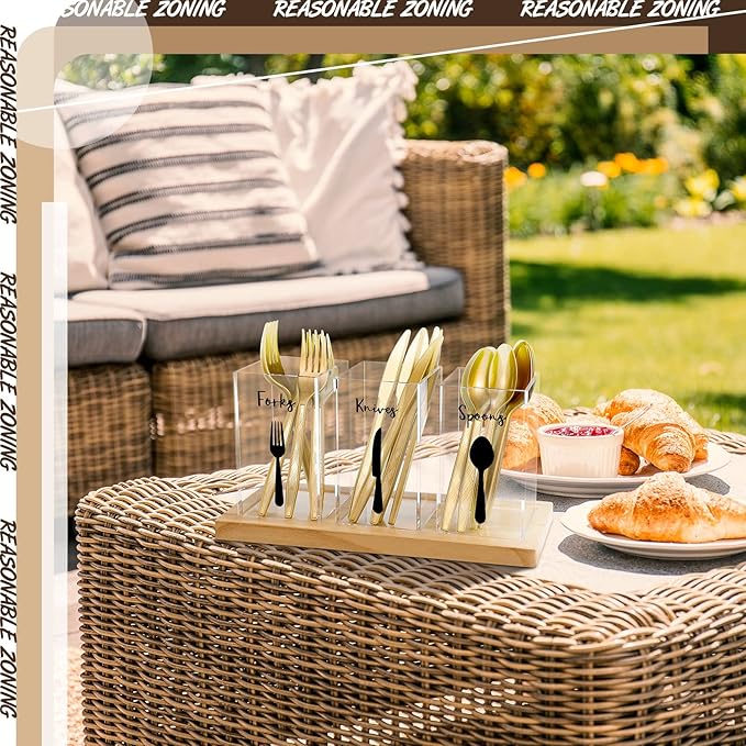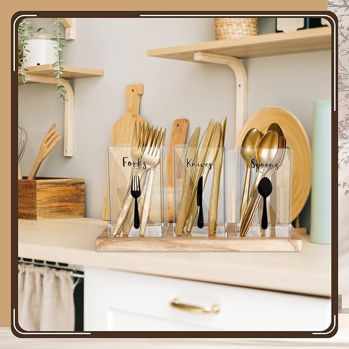 - Sturdy Material: this cutlery holder is made of acrylic material and the tray is made of solid wood, which are safe and reliable to use, sturdy and not easy to break or deform, suitable long lasting use
