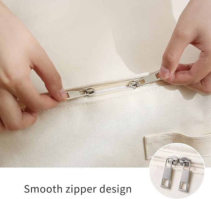2 Pack Large Canvas Comforter Storage Bags Closet Organizer for Clothes Sweater Clothes Organizer with Dual Zipper Three Carrying Hand