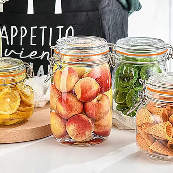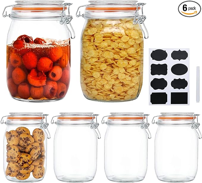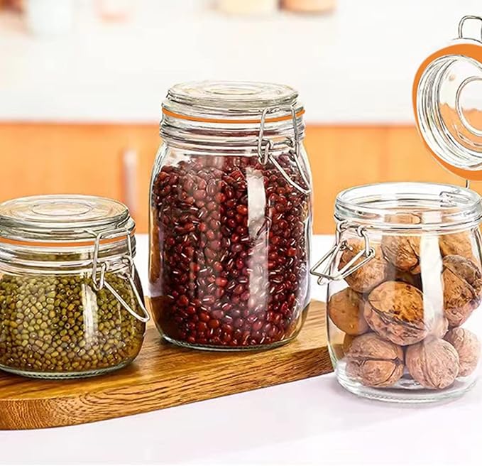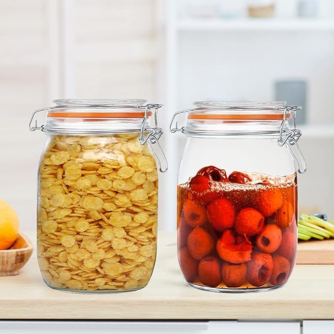 - Airtight Seal-Clamp lid glass food storage jars with rubber gasket provide an airtight seal to that prevent air,moisture and other contaminants from getting inside the jar and spoiling,helping to keep the food fresh for a longer periods.