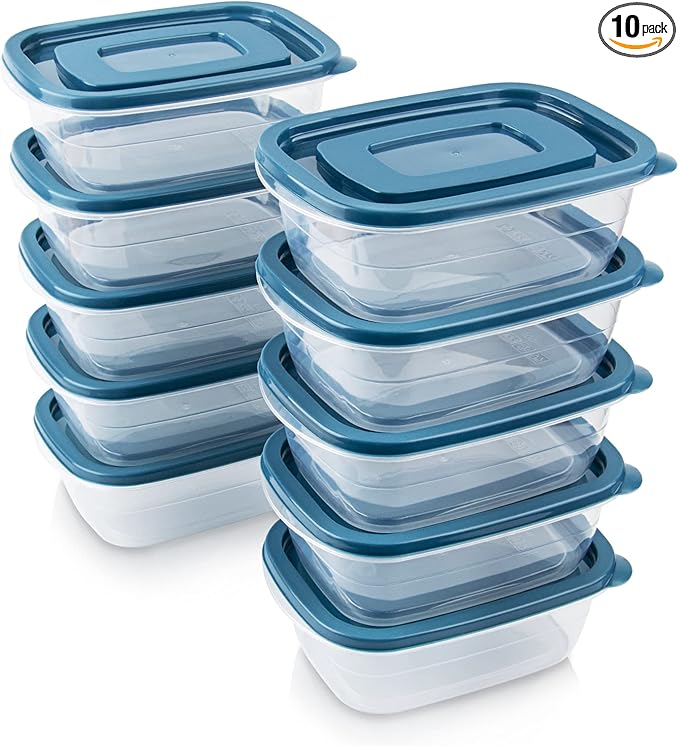 10PCS Food Storage Containers,Freezer Microwave safe,Food Container Sets,BPA Free Plastic Meal Prep Containers & Kitchen Set,Lunch Containers,use for School,Work and Travel,0.53 Quarts Per Box.