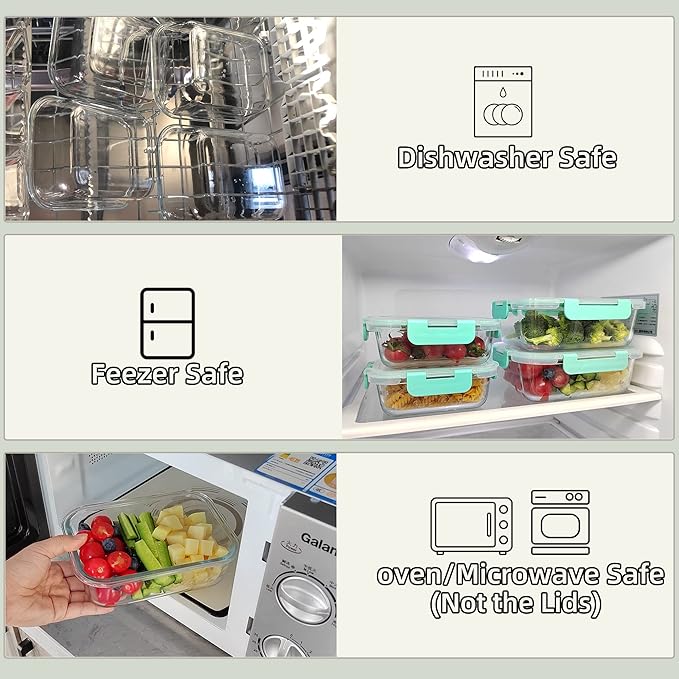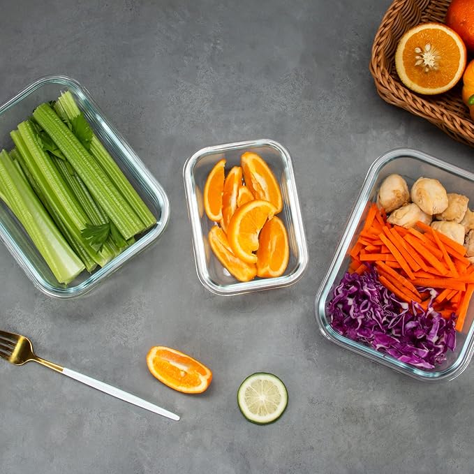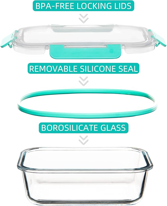 - AIRTIGHT GLASS STORAGE CONTAINERS FOR FRESHER FOOD: The airtight silicone seal and locking lid mean you can use them for a snack or sauce container without odors and air, keeping food fresh. With the stackable design, these containers can be stacked well. Our meal prep containers take up minimal room for the kitchen.
