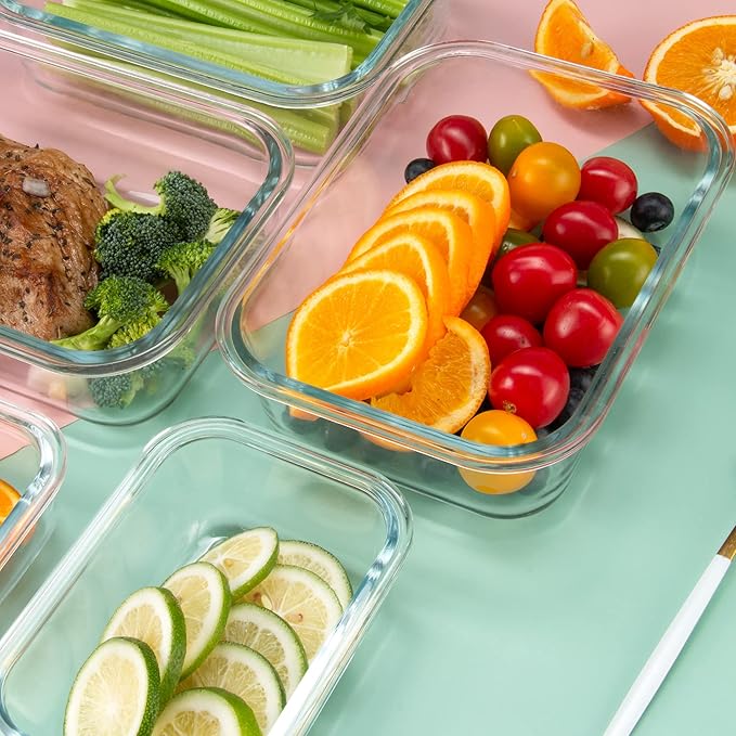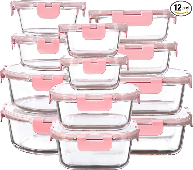 12 Pack Glass Storage Containers with Lids, Leak-Proof Meal Prep Containers, Dishwasher/Microwave/Oven/Freezer Safe Glass Food Storage Containers for Leftovers, to Go