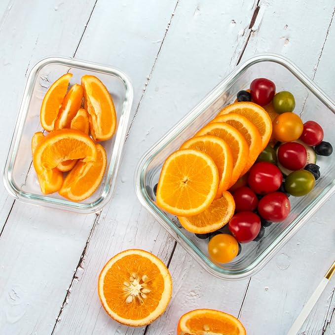 - Comes with 12 borosilicate glass containers in 3 sizes and shapes along with 12 airtight lids to keep food fresh