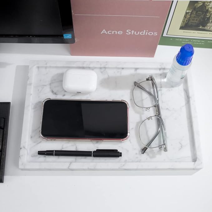 - 【MULTIPLE PURPOSE –ELEGANT DECORATION】Using the marble tray for the kitchen, bedroom, vanity countertop, bathroom, linen closet, and bedside table to keep your daily life more convenient and elegant.