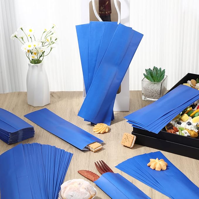 Geelin 500 Pcs Paper Silverware Bags 10" x 2-3/4" Kraft Utensils Sleeves for Restaurant Flatware Holder Unprinted Cutlery Bags Chopsticks Holder Christmas Wedding Party Tableware (Blue)