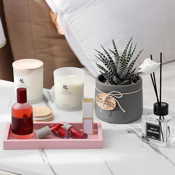 Small Silicone Bathroom Vanity Tray Rectangle Soap and Sponge Holder Kitchen Sink Organizer for Scrubber, Lotion Bottles, Perfume, Jewelry, Candle, Key Trinket Ring, Pink