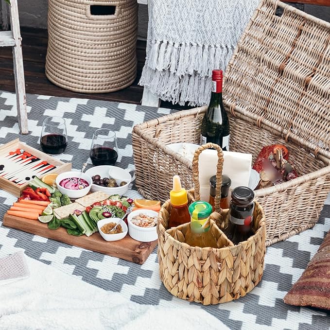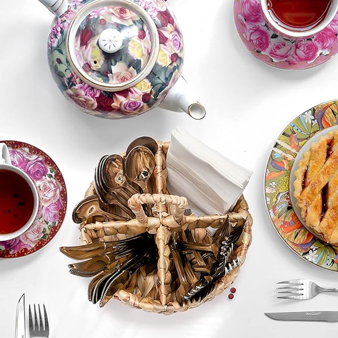 Hiceeden 2 Pack Utensil Caddy with Handle for Countertop, Water Hyacinth Silverware Caddy Holder Organizer for Party, Hand Woven Flatware Cutlery Caddy for Picnic