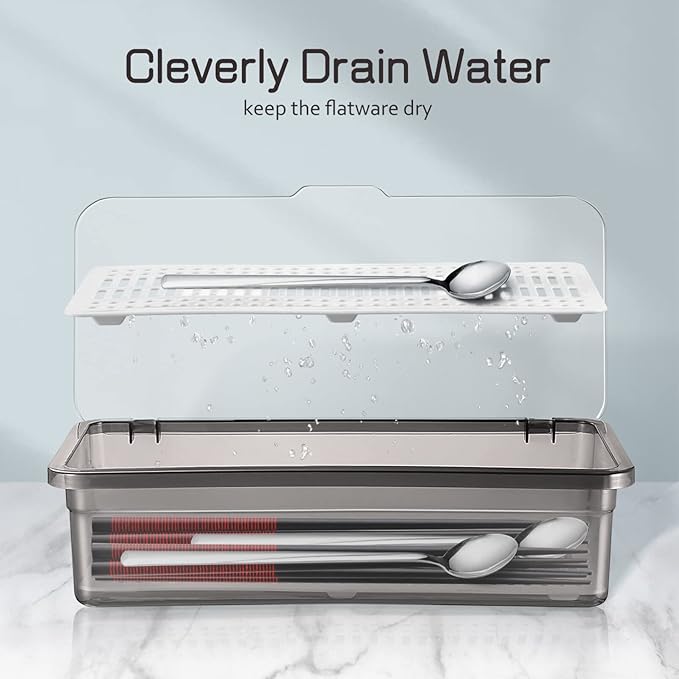 - Easy to Clean and Storage:Tableware organizer with lid is to keep your Utensil clean while put them in the countertop and drawer. No need to clean again when you use silverware