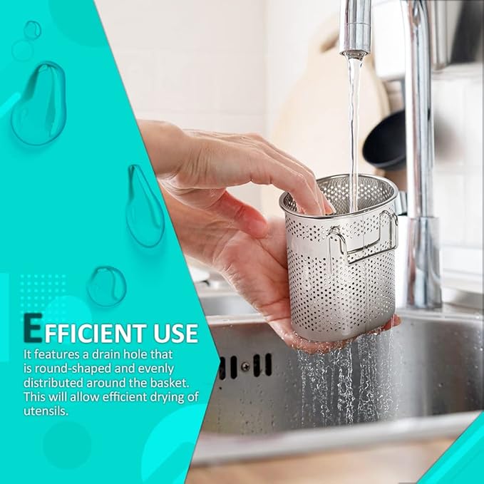 - Holds small utensils-Sturdy 304 Stainless steel drying basket holds small utensils,such as spoons, forks and knives