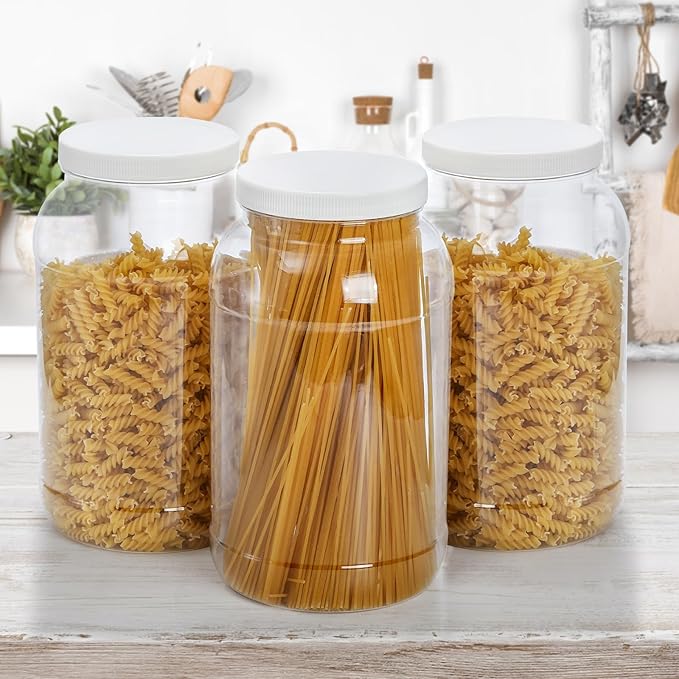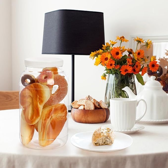 - What You Will Get: The package includes 2 clear plastic jars. The overall dimensions: 5.8" D x 10" H ( Included lid ); Mouth diameter: 4". The 1 gallon clear plastic storage containers can be used to meet your daily storage needs.