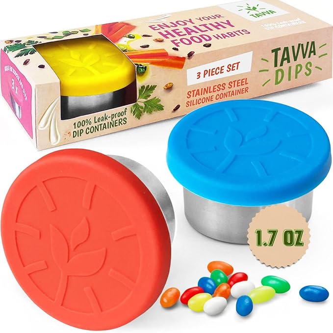 3 X 1.7oz Condiment Cups with Lids - Leakproof w/Silicone Lids - BPA Free - Dishwasher & Freezer Safe - Reusable Salad Dressing Container To Go - Sauce & Dip Cup for Lunchbox, Meal Prep