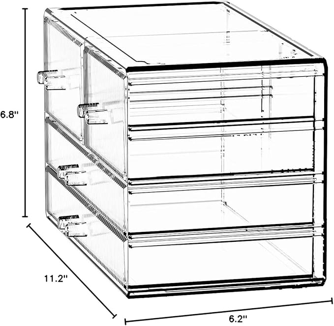 - With ample storage space, this make up organizers and storage is perfect for storing all your favorite makeup products, jewelry, and other accessories. The bathroom organizer features several compartments and drawers that are perfect for storing eyeshadows, lipsticks, brushes, and other makeup products.