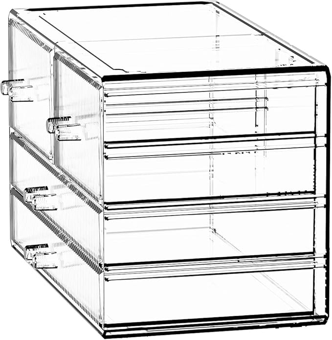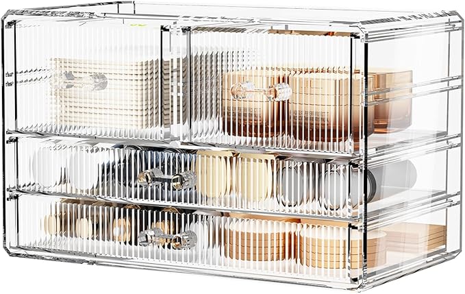 ZHIAI Stackable Storage Drawers, Acrylic Bathroom Counter Organizer Clear Makeup Organizers for Vanity, Kitchen Cabinets, Bathroom, Undersink, Home Organization and Storage (4 Drawers, Pattern D)