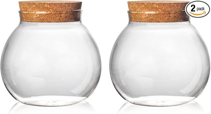 Set of 2 round glass jars with cork lid – 17oz wedding candy jar kitchen Storage jar, perfect for tea, biscuits, cereals, flour, beans, spices, coffee beans etc (2PCS)